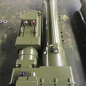 應(yīng)用案例:該電動(dòng)缸應(yīng)用于中國航天集團(tuán)某部特種車輛,作為整車調(diào)平、支撐機(jī)構(gòu)。電動(dòng)缸額定載荷200kN,行程600mm,額定速度50mm/s。